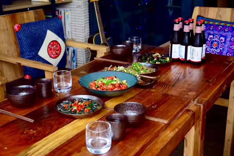 我们这边是一个三层楼的东方文化生活馆,有自己独特的抱朴见素的调性,也相对幽静。其次,从功能布局层面来说,我们一楼是敞开式的空间,有露天虚庭,咱们可以在这里话茶聊天慢时光,也有自由室内活动室,可以唱歌、观影和会议等等,也有临湖开放空间,可以听音乐、品酒、钓鱼、放空自己等等。二楼是书吧、中式包间和禅意大厅,会友和相关活动都可以。三楼是民宿。也就是说吃喝玩乐一体化基本满足